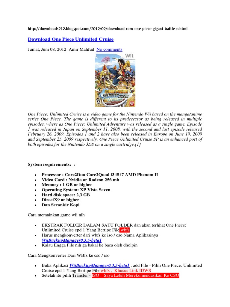 One piece unlimited cruise 2 wii iso 28. Episodes 1 and 2 have also been released in Europe on June 19 2009 and September 25. Special Wii Info Game Nama Game.