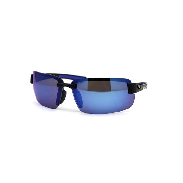 Choppers Mens Biker Exposed Lens Rectangular Motorcycle Sunglasses Black Blue Mirror Walmart Com